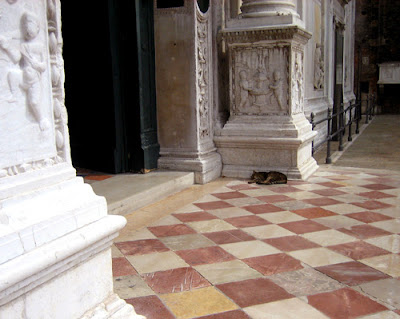 Tanti anni fa Venezia era piena di gatti. Gatti mai visti, lustri, pacifici, sereni, sicuri di sé, mai timorosi dell’umana presenza, immobili nei loro accoccolamenti nel mezzo della calle e del campo, che i passi aggiravano senza che loro spostassero un pelo. Un piacere incontrarli.
