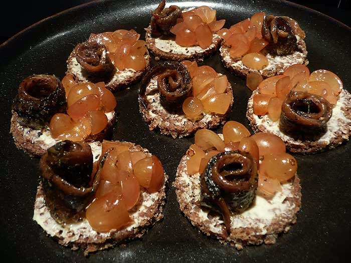sono di una golosità... l'accostamento acciuga uva mi incuriosisce... come sempre originalità e gusto fanno da padroni. Veramente complimenti, buona serata isa