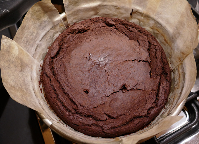 Versione 2, teglia di 22cm, rovesciata, con coperchio di glassa di cioccolato