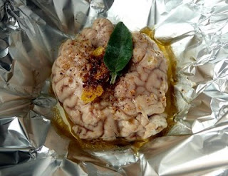Cervelli di abbacchio gratinati alla napoletana, con olive e capperi