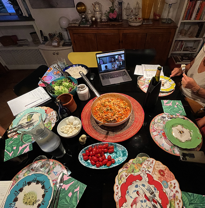 Princess Alexandra fa rosellucce rispetto alla sua potenza di fuoco; ma una come si deve eccola. La lascio sul ramo. Le sorelline, nel vaso. L'adenium obesum è molto più felice da quando è accanto alla cicas, fuori, all'aria, al sole. Vedo bocciolini. L'ignota grassa (ho scoperto come si chiama!Euforbia globolosa) fa tanti figlioli. Il senecio ancora irraggia il suo fuoco d'artificio giallo acido. Faccio timide sortite nei tarrazzi: sbircio, curicchio, incoraggio Mercedes nelle sue innaffiature. Mercedes si produce in pollo ottimo, tuttasalute. Se avesse avuto friggitelli, ne avrebbe messi volentieri tre o quattro affettati. Per un po' di piccantino. Per due. Qualche sera dopo le ho chiesto di farne un bel tegame, per una cena di lavoro.