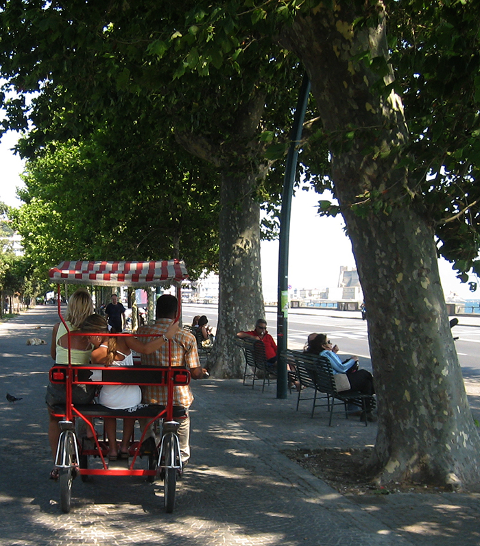 Via Caracciolo, Santa Lucia. Chi l’avrebbe mai detto che a Napoli, alle tre del pomeriggio di un’assolata giornata di luglio fosse piacevole andarsene a spasso? Progettavo ombreggiati rifugi e immobilità. Ecco che i passi ci portano sul lungomare, c’è un tale possente venticello nell’aria luminosa, una così fresca aria che attraversa lo splendente sole portando consolazione e refrigerio, che tutto invita a una passeggiata sotto frondosi tigli non storpiati da potature. Su ogni panchina c’è un teatro. Tre ragazze ebbre di ristatine, il motociclista, l’uomo con i cani, la coppietta, le vecchie signore in sosta. Dove c’era l’antica spiaggia di Chiaia, imperterriti bagnanti continuano ad andare al mare. A Santa Lucia sostiamo in un piccolo bar dove a detta di Nunchesto c'è un caffé ghiacciato ottimo. Imboccate il ponte che porta a Castel Dell’Ovo, scendete le scalette a sinistra. Lì c’è il bar, lavagnetta con cornice rossa e porta celeste, tavolini di fronte al porticciolo, Vesuvio all’orizzonte, che vi farà sentire proprio al mare. Nessuna insegna. Due parole di omaggio ai tavolini di legno, riposanti e accoglienti per gomiti, occhi e pensieri.