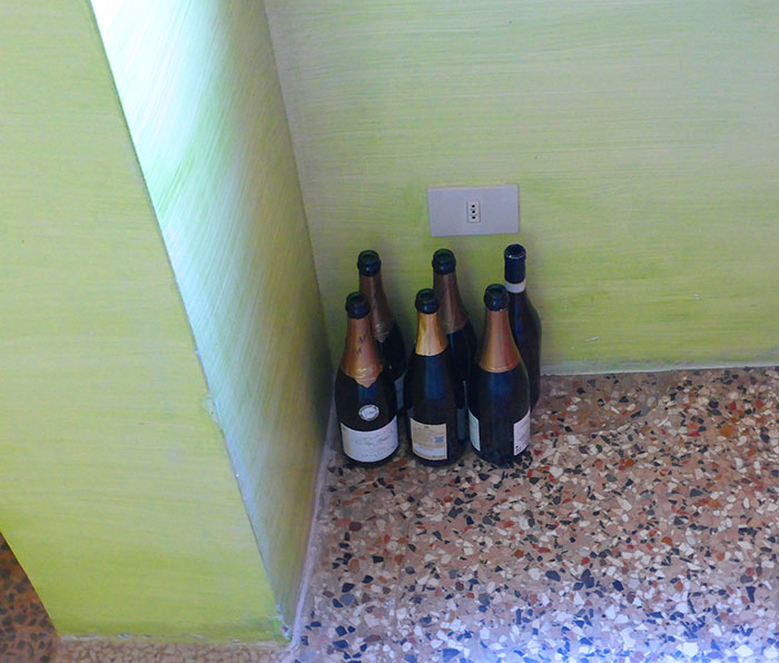 Dicembre 2016. L'ultimo giorno dell'anno. Prima ancora di accendere i moccoli festivi, eravamo già tutti con un bicchiere di Champagne in mano; bicchiere - una coppa vecchio stile, di quelle a forma di seno di dea - che poi non ha avuto pause tranne che per una breve irruzione di Barbaresco, reso opportuno dall'ingresso in tavola di un certo Pasticcio d'erbe con cervello e animelle (oltre che altre innumerevoli cose) in cui mi ero lanciata, impegnandomi a tradurre in realtà una ricetta mitica dell'inzio del XX secolo di cui erano restate bizzarre tracce in casa. Pasticcio che, preannunciato con le sue centocinquanta polpettine, e congiunto alla presenza pure a tutti nota di uno Stollen per fare il quale ero andata a novembre fin nel Palatinato, deve aver fatto pensare agli altri cuochi che fosse il caso, visto come ero messa, di lasciarmi pazientemente fare. Allora ho aggiunto a questi due piatti le Aringhe marinate come a Oslo, un piatto della giovinezza rifatto dopo molti anni, di cui ricordavo le attrattive golose; infatti ne presentammo una cofana, io e Pomaurea (che ha partecipato a tutto il forsennato affettare, tritare, sbucciare, pelare, marinare, scolare, saltare in padella, mescolare, versare, coprire, scoprire, impanare, friggere, richiesto da pasticcio e aringhe) temendo avanzi eccessivi, ma così non fu. In ogni caso, Cucurbita e Ida si fecero coraggio e affrontando la mia foga culinaria proposero ottime tartine di frolla con salmone e ottime lenticchie risottate. Una piccola occhiata intorno: la cucina dove il pasticcio finisce di cuocere, la credenza che dona i suoi piatti e bicchieri, e alla fine delle serata le cinque bottiglie di Champagne e la bottiglia di Barabaresco (più mezza, per otto disuguali bevitori). Menu: Tartine di salmone affumicato con robiola e paprika; Aringhe marinate; Pasticcio di erbe, cervello e animelle; Lenticchie risottate; Insalata di radicchio tardivo e arance; Stollen; Gelato di crema; Dolcetti veneziani. Champagne Serge Mathieu, Barbaresco Asili.