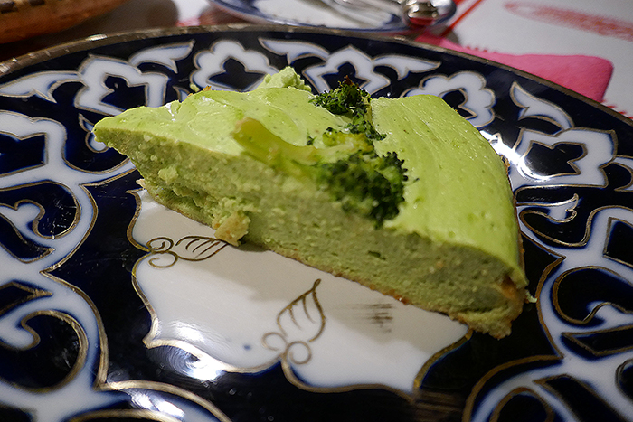 Versare nella teglia foderata di brisée, deporvi su le cimette (meglio se tagliate a metà, che si veda il loro essere piccoli alberelli; nella foto solo una ha questa intelligenza).