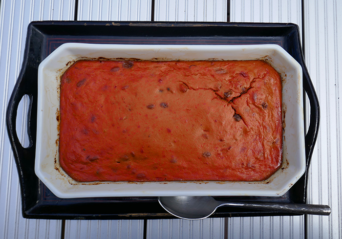 Versare tutto in una teglia da forno da un litro, ben imburrata, bordi bassi.