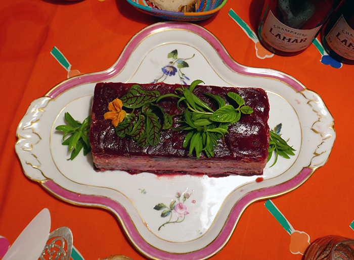Luglio 2019. Incursioni napoletane. Finalmente le due amiche dopo molte promesse vengono a Roma, portate da un certo messaggero, pure molto napoletano, che sa tessere trame. Tre napoletani, perciò; l'uno arriva pieno di mozzarelle, le altre con una grande borsa - come mi commuovo a vedere l'assenza di ogni timore per questo tipo di terrificanti trasporti, che sa così tanto di vecchie famiglie di una volta - borsa detta del parsonale, poiché così venivano chiamati i coloni del tempo andato, ed Ester si affannava a spiegarmelo come a una forestiera, mentre ridacchiavo sotto i baffi, vedendo ancora una volta quanto la mia infanzia fu regno di Napoli. Insomma la borsa conteneva ogni bendiddio, prugne, ciliegie, provolone del monaco, marmellata di pere di Agerola ottima con quello, zucchine freschissime. Commozioni e previsioni di pranzi quasi campestri. Intanto per loro avevamo provveduto così: Limoni al forno come nella costiera amalfitana (un azzardo, certo, ma naturalmente apprezzarono senza fare una piega); Pesce e cocco fresco quasi come in Kerala (qui mi allontanavo velocemente dal rischiare troppo); Terrina di pesce, rape rosse e wasabi con Salsa di yogurt e cetrioli al wasabi (la ripeto dopo breve tempo dalla prima sperimentazione per perfezionarla); Zuppa di albicocche (sperimentazione di successo immediato).